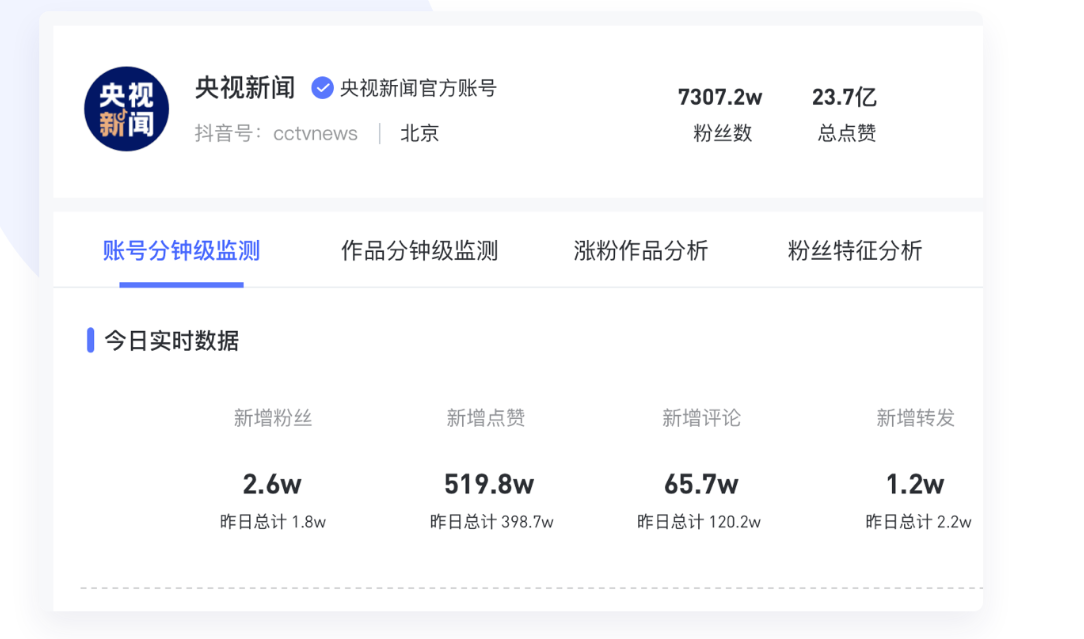 分钟级监测,PC+微信小程序双端实时查看自己和竞品账号数据,快速找到涨粉点